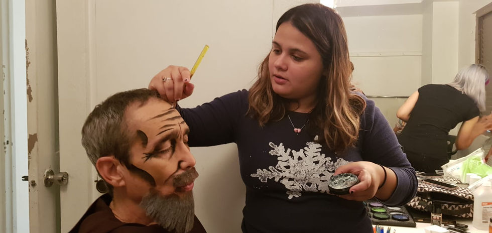 In theater you can be way more created with your characters. Every single actor has makeup including villains, old makeup, drag queens, even characters like Egyptians example in the Musical Aida. The Makeup is elaborate, big and exaggerated. This type of makeup should be seen from far away in the back of the theater and high up in the balcony of the theater. The lights of the theater also compliments the makeup to look more realistic from any point of view.